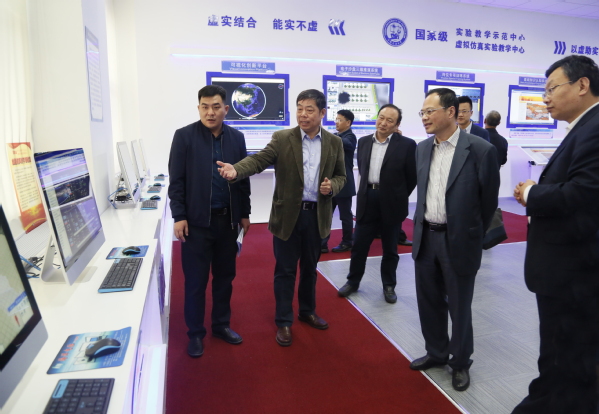 于杰副省长认真听取了中心负责人对中心发展、体制建设、人才培养、产学研结合方面的情况介绍,重点参观了中心虚拟仿真教学体验室,观看了中心自主研发的虚拟仿真教学软件,于杰充分肯定了中心研发创新能力以及在科研成果转化方面取得的成绩,鼓励中心继续发挥国家级实验教学示范中心、国家级虚拟仿真实验教学中心在教学培训领域的引领作用,争取为双一流学科建设、“一带一路”建设和地方人才技术应用能力培养做出更大贡献。