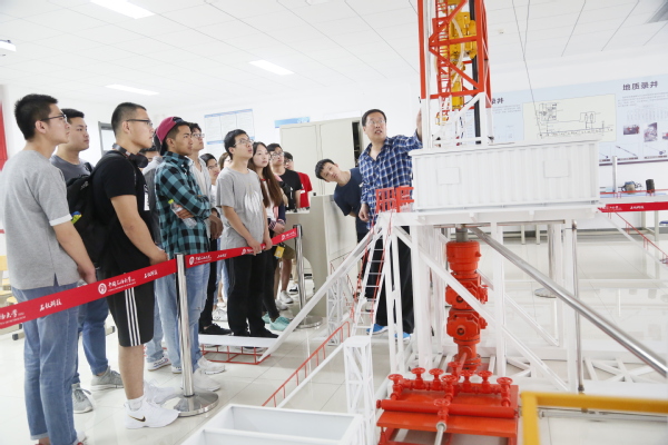 在相关老师的带领下,同学们认真参观了中心地质、储层及注采工艺与装备实训室,并在钻井工艺与装备实训室,了解了钻头、钻杆、泥浆泵、顶驱等石油装备,观看了钻井现场演示视频,实地操作了司钻台等仿真作业装备。同学们一致认为,此种教学方式,通俗易懂,便于更好掌握相关知识,希望以后能够有机会多来中心学习。