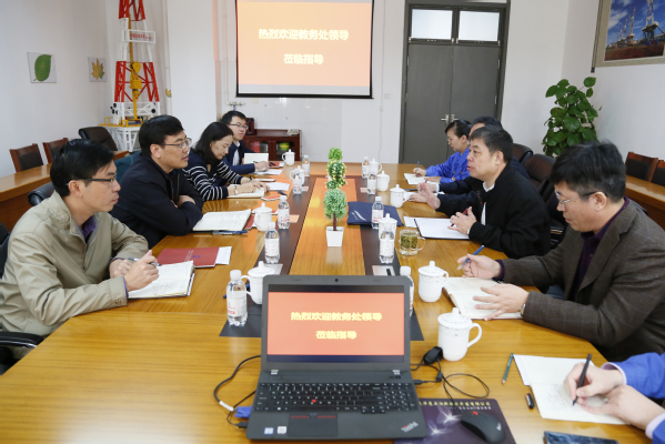 中心相关负责人对中心近些年来在威廉希尔williamhill官网、服务学校学科建设、虚拟仿真建设、学生创新创业指导、下一步发展规划等方面工作和在学校、地方及全国发挥的良好示范辐射作用进行了汇报,并单独就虚拟仿真技术在中心的应用及下期规划做了详细的阐述。冯其红处长对中心的工作和成绩给予了充分肯定,并指出中心应进一步加强虚拟仿真技术对我校石油学科的支撑作用,搭建更为完善的适合多人在线、真实模拟各种流程、具备考核评价功能的网络化综合实训平台,为我校石油人才培养奠定坚实的基础;同时要求中心要不断加强与学院、专业和工程训练的结合,为学校的建设发展做出更好成绩。最后冯处长也进一步希望中心在脚踏实地完成好相关工作的基础上,不断总结和提炼,为后期申报高层次成果做好规划和准备。