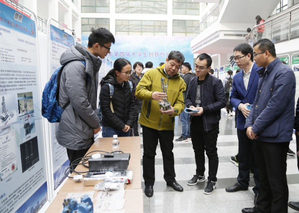 在此次作品展上,中心共有10个展板、4件创新作品实物展出,其中小区梳齿型简易停车装置吸引了广大师生关注,副校长张玲玲与该项目负责人进行了深入的交流,了解该装置的详细情况并提出指导意见。