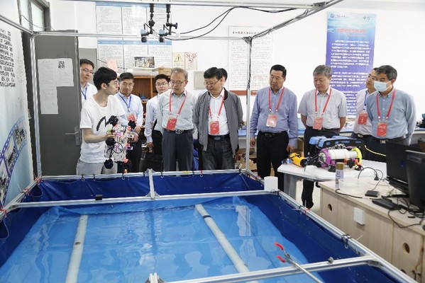 在学校相关部门负责人、海洋与空间信息学院等相关领导的陪同下,专家们实地考查了中心3D打印技术、数控加工技术、虚拟仿真技术各特色实训室以及机器人、无人机等大学生创新室,专家们高度肯定了中心仿真实训教学对专业人才培养、教学方面所起的作用,鼓励中心再接再厉以创新引领高端,为进一步提升教学、教研质量和水平做出更大的贡献。