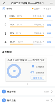 本次线上教学充分总结了2020年线上教学经验,以雨课堂视频直播为主要授课方式,辅以石大云课堂、工训中心云课堂、石油工业虚拟仿真实验教学平台、实验空间等多种网络教学平台,集真人直播、动画播放、师生互动、随堂考评、课后答疑于一体,形成多元融合的网络教学模式,取得良好的教学效果。