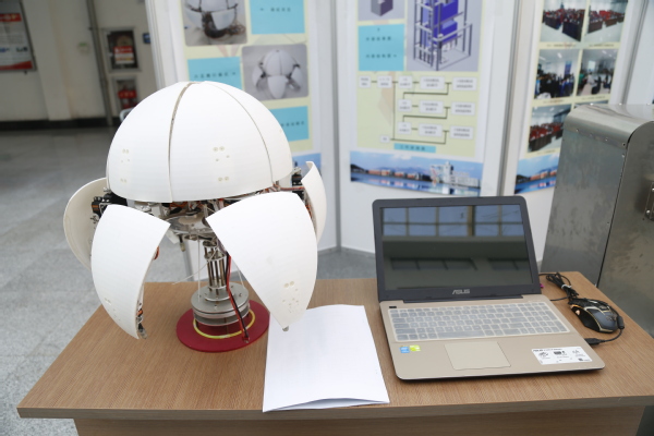 该球形机器人采用球形的外壳结构,与六足机器人融合在一起,既能在崎岖地段运动,又能在平坦地区快速移动,且具有良好的改装性能。
