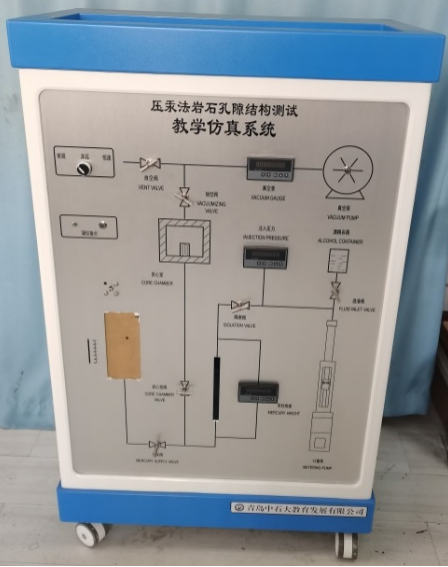 借助计算机技术、虚拟仿真技术、智能通讯技术等,仿真模拟压汞法测定毛管压力曲线过程中各类数据变化,设置了常规、高压、恒速压汞三种模式,达到仿真效果、真实水平。学生可以借助此设备,在无汞状态下完成实验过程,学习实验方法。