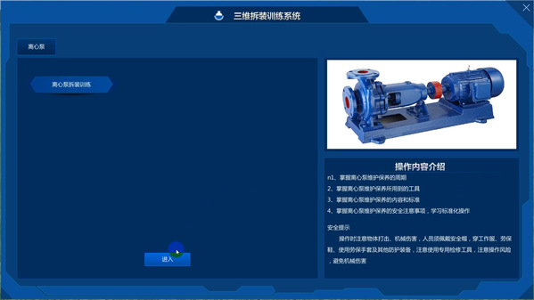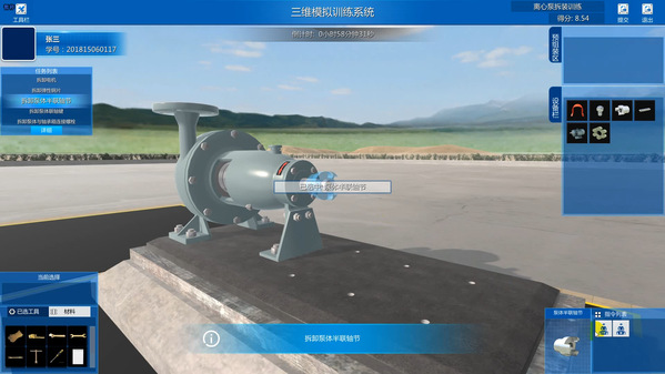 该系统可模拟石油工业生产关键设备实际结构、可利用电脑对设备进行虚拟拆装与维修操作、可熟悉设备结构、设备维护保养过程、设备故障维修方式方法,同时对训练过程进行评价考核。