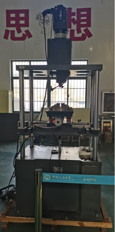 该装置可以模拟不同钻压、不同类型钻头、不同岩石、不同转速、不同径向冲击下的破岩效果,可以实现恒钻压钻进和恒钻速钻进。通过本装置,可以使学生掌握钻井参数对钻井效率的影响,也可帮助科研人员分析对比提高钻井效率的不同手段。