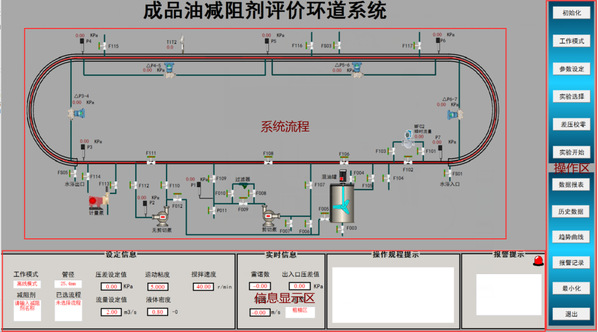 该装置可开展以下研究工作:1、不同油品、不同流动状态、不同流量下减阻剂的性能评价;2、不同油品减阻剂适应性研究及优化筛选;3、减阻剂加注工艺及加剂量等方面的研究;4、管道材料对减阻剂的影响研究;5、温度场对减阻效果影响研究;6、减阻剂减阻效果随流动时间变化的影响研究;7、减阻剂过泵剪切失效问题研究;8、不同管路、不同温度、不同压力条件下测定参数:压力降、摩阻梯度、剪切速率、剪切应力。