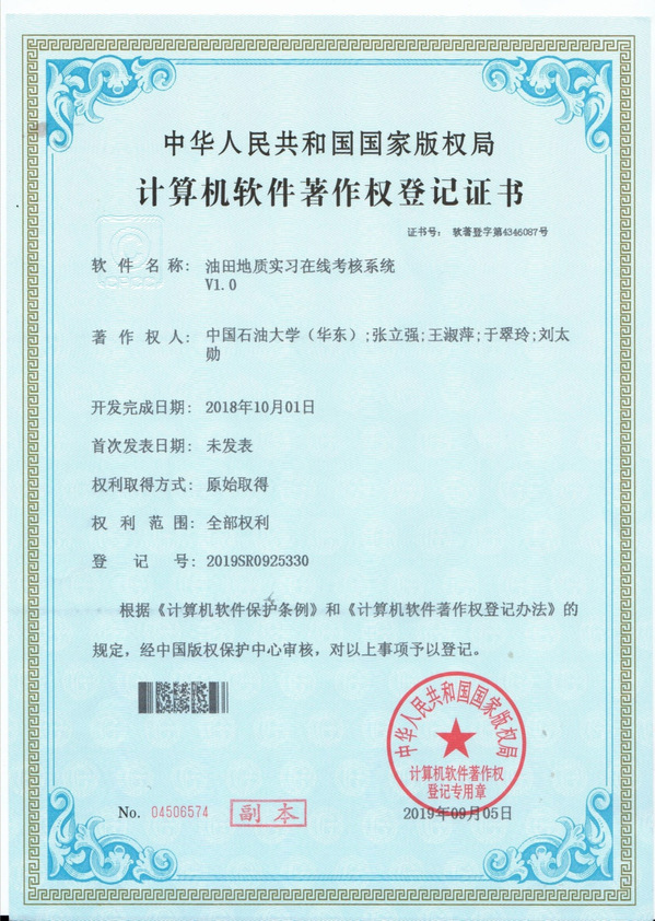 27 | 油田地质实习在线考核系统V1.0 | 软著第4346087号 | 2019.09.05 |