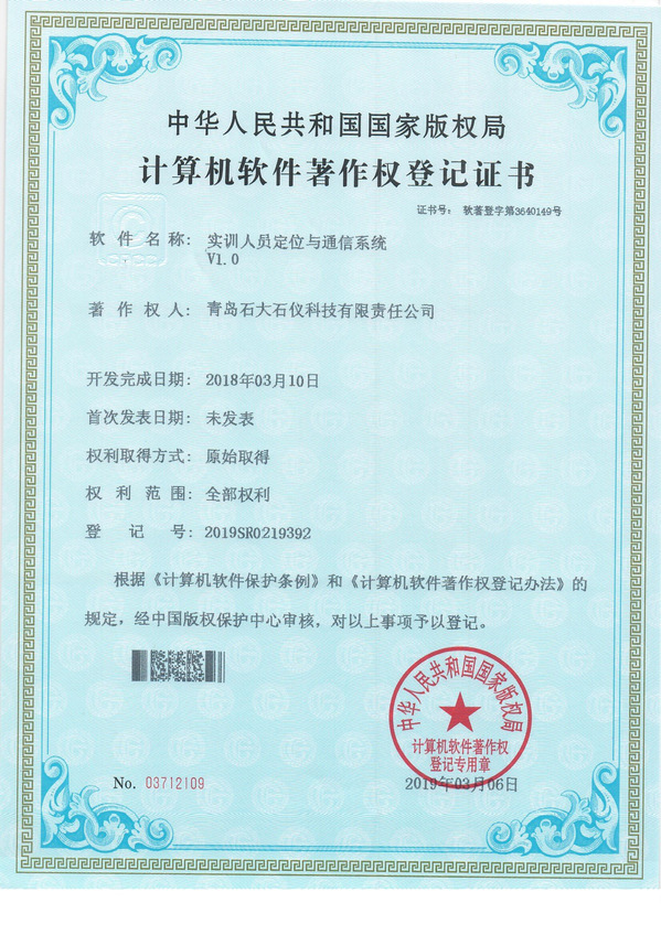 14 | 实训人员定位与通信系统V1.0 | 软著第3640149号 | 2019.03.06 |