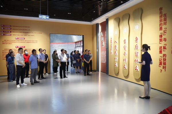 在讲解员的引导下,大家有序参观了方向篇、使命篇、严管篇、警示篇和追问篇五个展厅。通过聆听讲解、浏览图文、观看视频、案例分析、实物展示、实景重现等多种形式,从理论政策到实际案例、从国内海外到青岛本地,党员同志们全面了解了党的十八大以来,以习近平同志为核心的党中央惩治腐败的决心和反腐败工作取得的重大成果;沉浸式体验了多位领导干部从初心萌发、矢志奋斗到忐忑彷徨、滑向深渊,最终落网后发露忏悔的心路历程,上了一堂全面生动的廉政教育课。