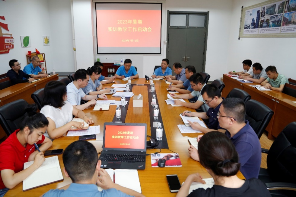 会上,教学部主任李雪琴对今年暑期29个班级的《工程综合训练与创新》教学工作进行了详细安排,要求各工种教师要充分准备好实训设备、实训材料、教学资料,保证教学任务顺利开展;值班老师认真负责,做好实训记录;相关人员密切配合,全力做好实训教学的后勤保障工作。