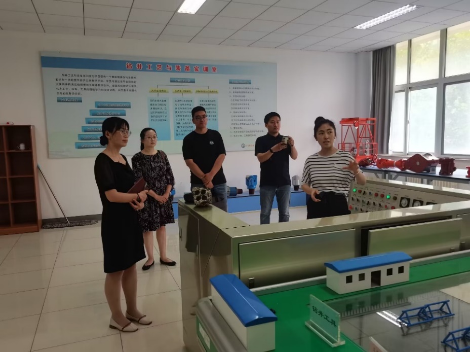 来宾们参观了中心3D打印技术实训室、现代加工技术实训室、虚拟仿真教学体验室、采油工艺与装备实训和钻井工艺与装备实训室等,双方在安全技术实训和石油工业生产技术实训等方面展开了讨论与交流。