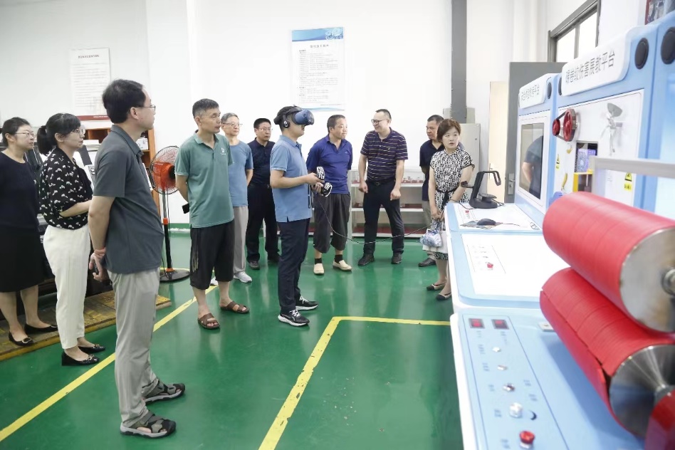 来宾们认真参观了中心的虚拟仿真技术体验室、3D打印技术实训室、油气开采技术实训室、钻井技术实训室等实训室,并就虚拟仿真技术及应用、院士科技成果虚拟仿真资源开发等进行了交流。