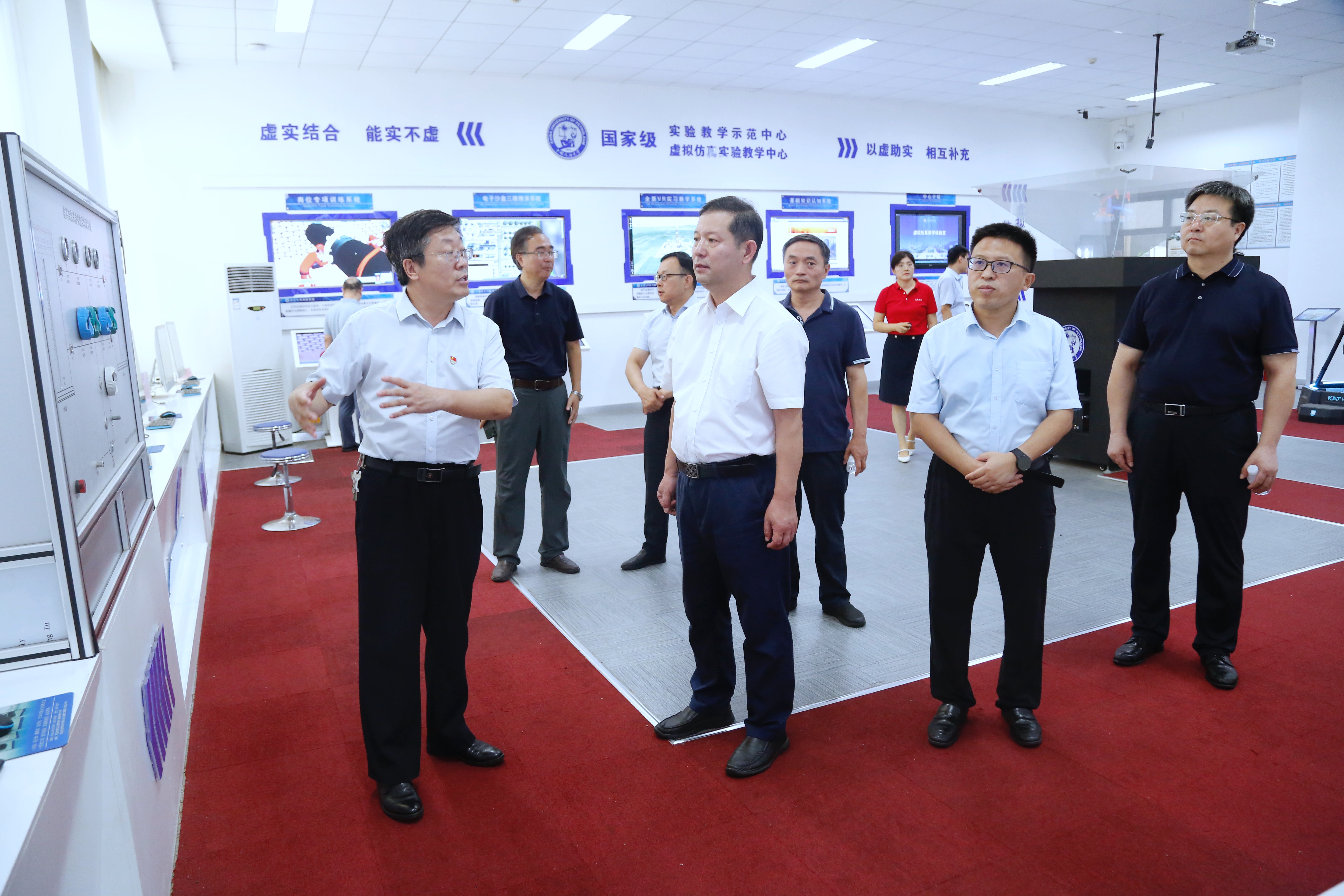 王同奇一行实地调研了威廉希尔williamhill平台的虚拟仿真威廉希尔williamhill官网资源、安全应急实训和工程实践教育实训室的建设情况,重点参观了981海洋钻井仿真教学平台、虚拟仿真教学体验室、钻井、录井、采油、修井等石油特色实训室,马建民主任就中心的发展历程、教学科研、人才培养以及两个国家级实验教学中心(国家级实验教学示范中心、国家级虚拟仿真实验教学中心)的建设情况做出简要介绍。
