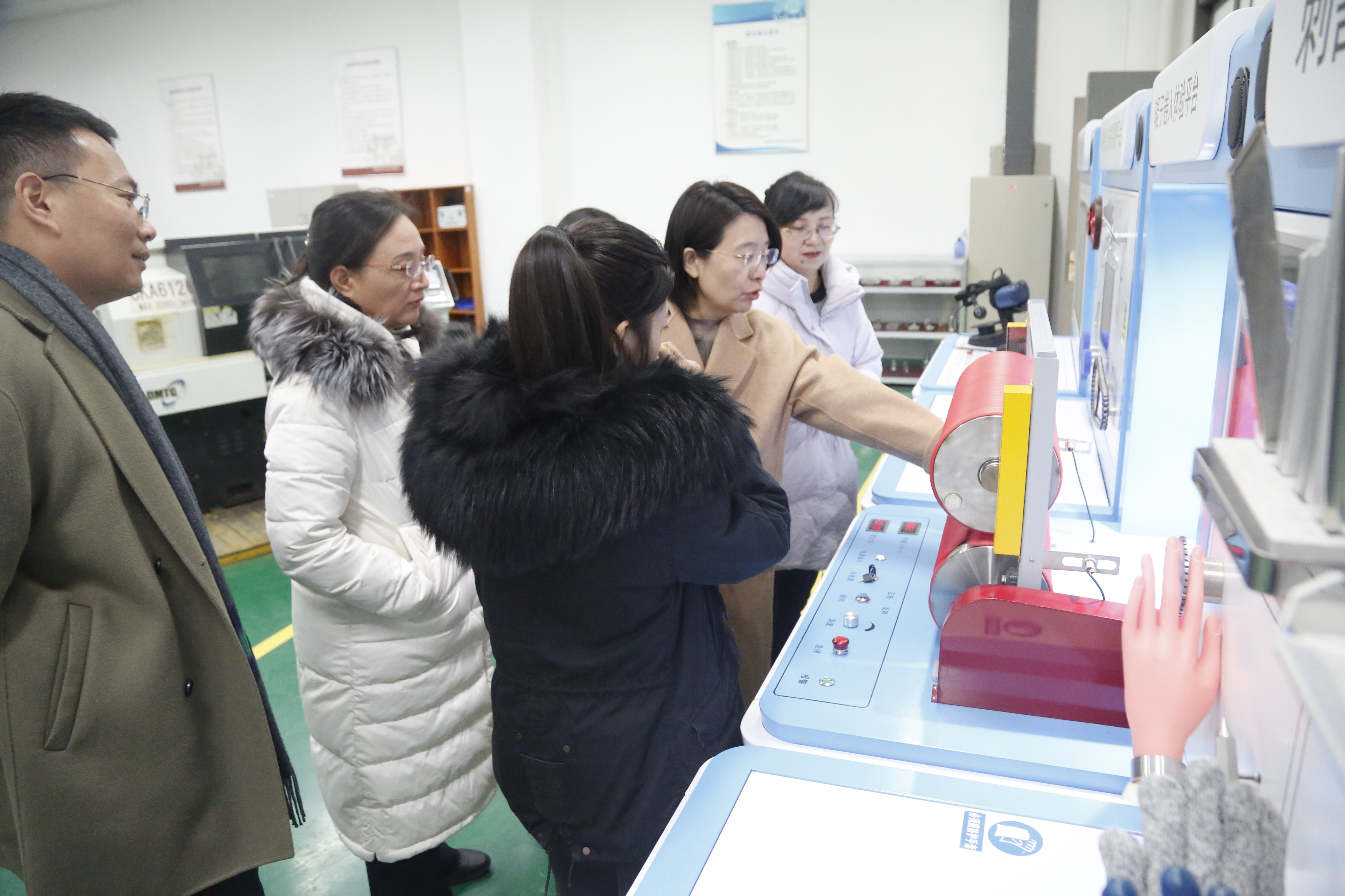在教务处及中心相关负责人的陪同下,刘爱蓉一行重点参观了中心现代加工技术实训室,钻井、采油、集输等石油特色实训室和虚拟仿真教学体验室等,观摩了钻井仿真现场安全操作演练,体验了中心自主研发的触电模拟、碾卷绞伤害模拟体验平台,以及相关的仿真实训教学装置,了解了中心的发展历程及课程设置、师资队伍、产学研一体化建设情况,对中心的自主研发能力、大学生创新创业教育等给予高度评价。本次参观交流有力促进了双方的相互了解,今后双方将继续加强沟通与合作,共同推动行业高质量发展!