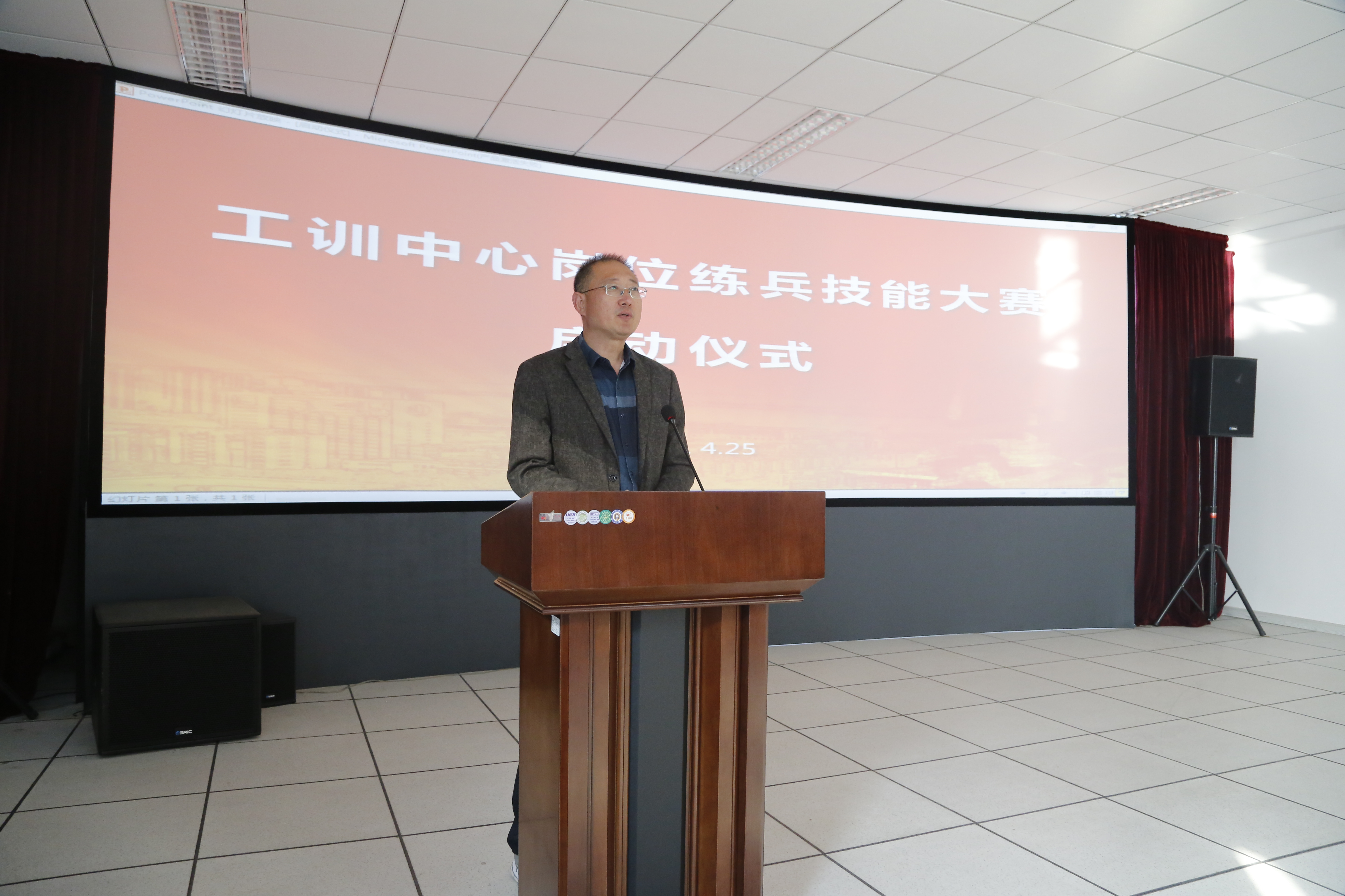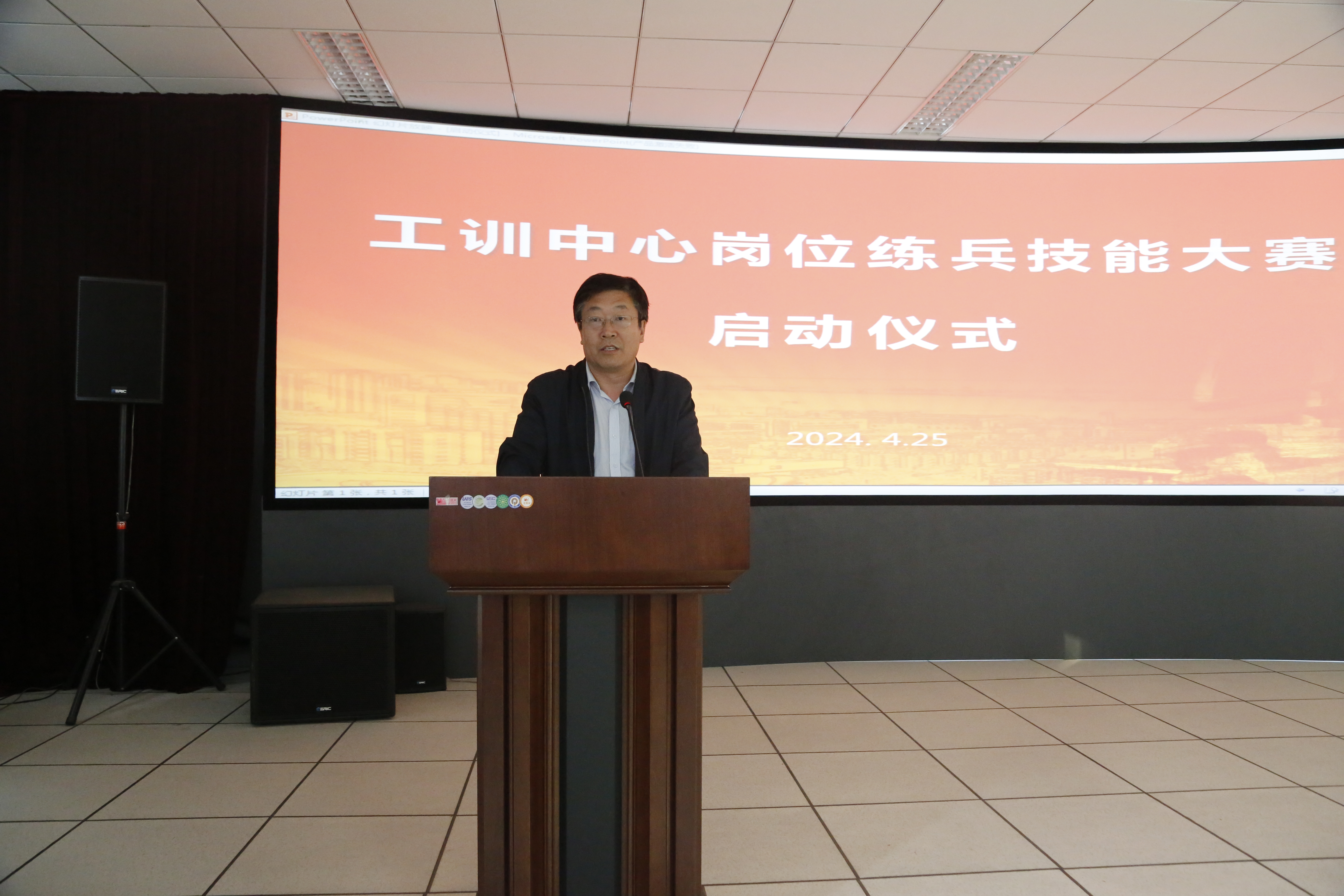 工训中心常务副主任马建民讲话,宣布大赛正式开始