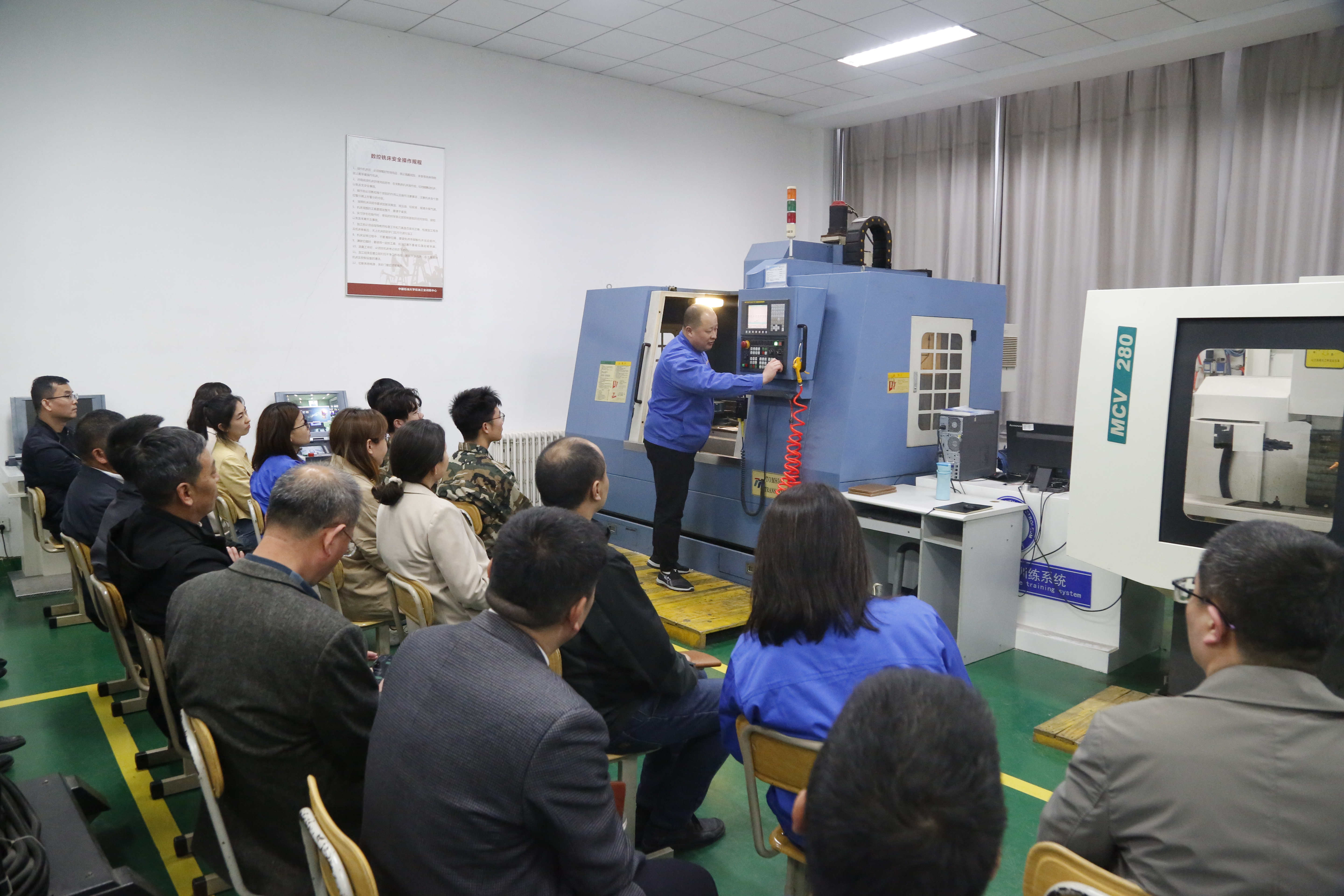 启动仪式后,王德钊、陈勇等前往中心注采作业技术实训室、数控加工技术实训室观摩职工讲课比赛。