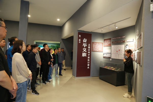 在讲解员的引领下,全体党员依次参观了纪念馆的展厅、报告厅和部分红色文化设施,浏览了垦区抗日根据地的创建、党政军群工作生活、垦区建设和革命历史任务、垦区民间生活生产工具、民风民俗等方面的多种资料和实物。馆内一张张弥足珍贵的图片、一件件历经战火洗礼的兵器、一个个精心布置的模型、一组组重现历史的画面,真实地再现了渤海垦区作为抗日战争时期山东战略区政治、军事、经济、文化的稳固后方的光辉历史,深深地吸引着党员们的脚步和目光。大家深刻感受到先辈们在血与火的艰难岁月里铸就的敢于牺牲、无私奉献的革命精神,感受到“勿忘国耻,圆梦中华”八个字沉甸甸的份量,心灵再次受到洗礼和净化。