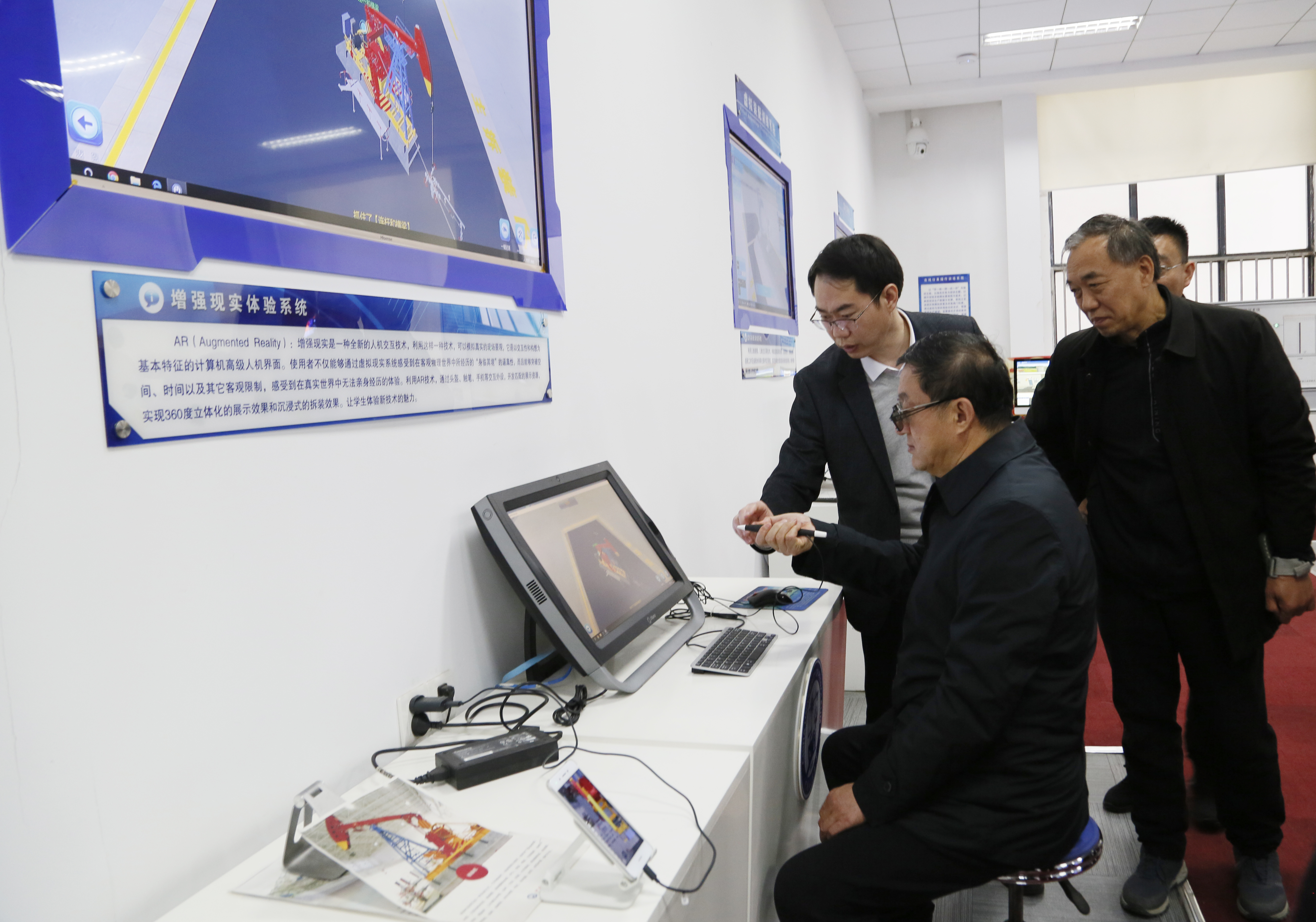 中心常务副主任马建民对卞建平一行来中心考察调研表示热烈欢迎。卞建平一行先后参观了981海洋钻井仿真教学平台、现代加工实训室、虚拟仿真体验室等,并对中心的产学研一体化运行模式、工程实践训练科目、虚拟仿真教学形式进行了重点调研,对中心的虚拟仿真教学资源和产学研一体化发展模式给予了高度评价。