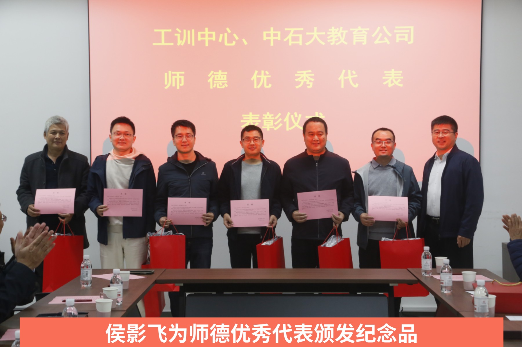 在随后举行的座谈会上,中心对过去一年师德考核优秀人员进行了表彰,李连峰、苑得鑫、李卓军、赵玉明、荆正军、赵博等老师作为代表接受表彰。教务处处长、工训中心主任侯影飞为师德考核优秀代表颁发纪念品,科教集团副书记、总经理吴天乐为荣休职工代表颁发纪念牌,工训中心常务副主任、中石大教育公司董事长马建民为退休职工代表赠送纪念品,以感谢他们多年如一日的辛勤付出与无私奉献。