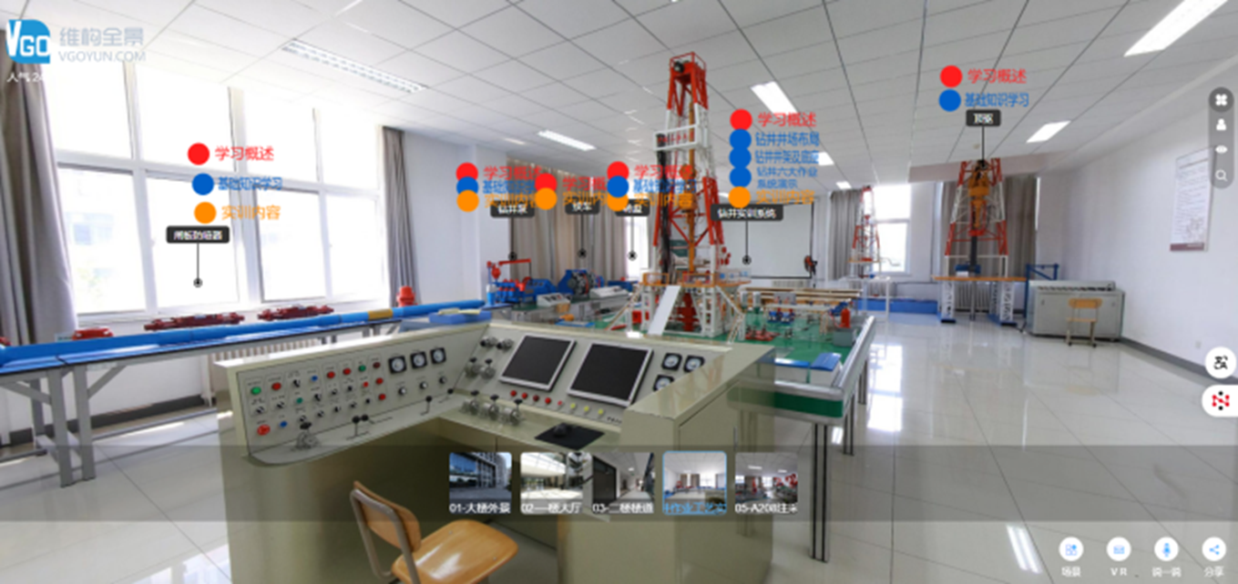 该实验室依托“国家级虚拟仿真实验教学中心”和“国家级实验教学示范中心”,下设钻井技术、固完井技术和修井技术3个实验室,并配备2个虚拟仿真实验室和2个工程实践与创新实验室。实验室坚持以“学为中心、技术赋能、虚实共生、能力跃升”为核心理念,以“技术赋能教学、数据驱动创新”为主线,构建了“四维融合”递进式虚拟仿真资源体系,形成“五位一体”油气钻井虚拟仿真教学体系,实现“五化同步”新型实验范式,在国内外产生了良好的示范与辐射效应。