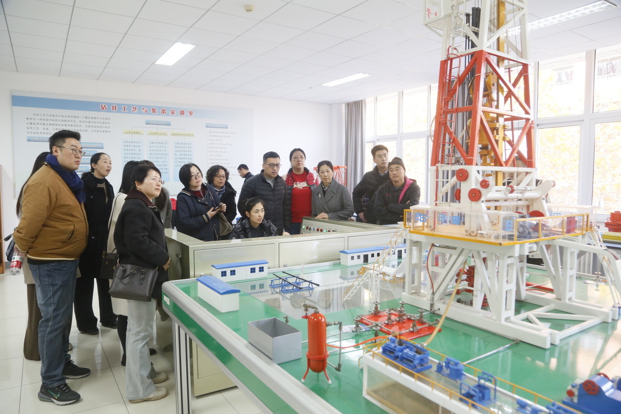 在中心教师引领下,毕芳芳一行先后参观了3D打印技术实训室、数控加工技术实训室、虚拟仿真技术体验室及钻井、采油工程技术等石油工业实训场所,重点考察了中心在工程实践训练、虚拟仿真资源研发应用以及产教融合等方面的情况。