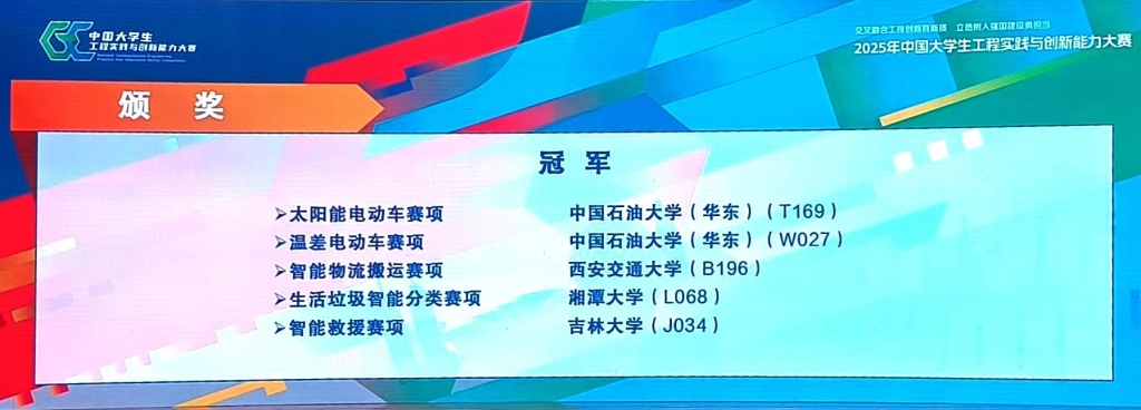在2025年中国大学生工程实践与创新能力大赛中,中心教师指导参赛的11支本科生团队全部荣获国家级特等奖,特等奖获奖数量及名次位居全国高校首位,并夺得5个项目中的2项冠军、1项季军;我校与中国海洋大学共同承办了中国大学生工程创新能力大赛山东省区选拔赛,中心指导的参赛队伍荣获一等奖13项,其中冠军6项、亚军4项;不完全统计,2025年中心指导学生共参与近30项国家级创新赛事,累计获得省部级以上奖励95项、国家级奖励55项,学生创新实践能力得到充分展现。